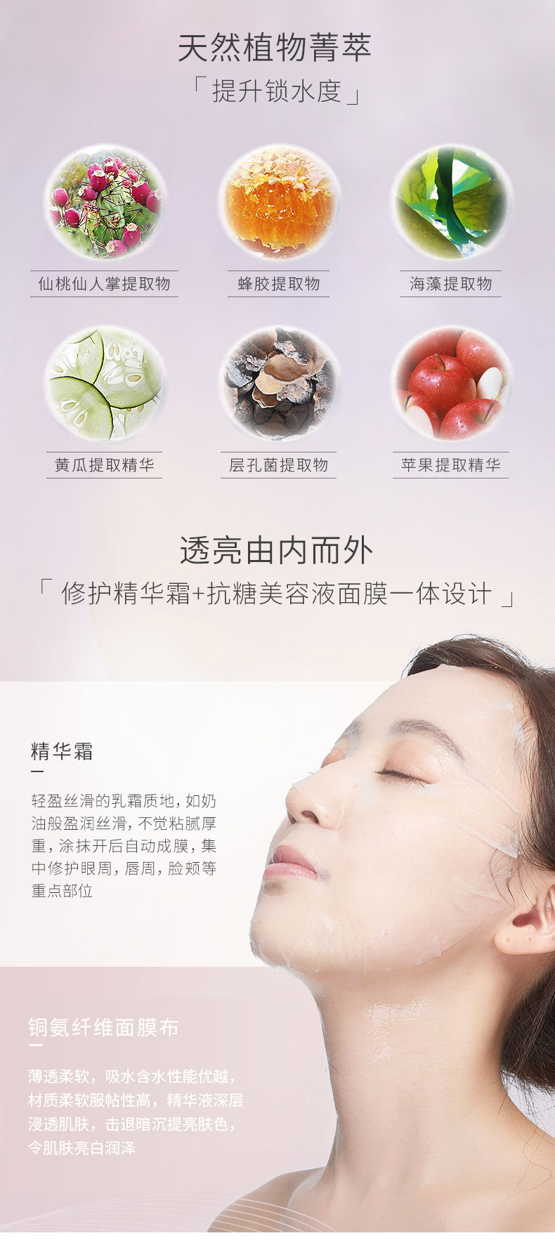 【component】 (mask) Water, glycereth-26, PEG / PPG-17 / 6 copolymer, glycerin, sodium hyaluronate, 1.2-hexanediol, centifolia rose flower water, Everco extract, hamamelis water, almond extract, glutamine, glutamic acid, arginine, alanine, Phenylalanine, proline, purslane extract, hydrolyzed collagen, sodium ascorbyl phosphate, aloe vera juice, β-glucan, xanthan gum, BG, pearl extract, α-arbutin, French cabbage root bark extract, corn root extract, apple fruit culture cell extract, Boswellia serata resin extract, willow bark extract, panthenol, trehalose, betaine, carbomer, allantoin, niacinamide, starch octenylsuccinate Na, maltodex Thorin, pyridoxine HCI, silica, Ca pantothenate, placenta extract, polysorbate 80, EDTA-2Na, tocopherol acetate, acetylhexapeptide-8, hot spring water, lactobacillus / soy milk fermented liquid, arge extract, tea leaf extract, propolis extract, of Nciafix indica extract, phenoxyethanol, fragrance (cream) Water, aloe vera leaf extract, sodium hyaluronate, allantoin, BG, panthenol, carbomer Na, betaine, glyceryl caprylate, cucumber extract, apple extract, jojoba seed oil, tea seed oil, almond oil, cetearyl alcohol, benchylene glycol , Tocopherol acetate, squalene, isoamyl laurate, adenosine, sclerotium gum, sorbitan tristearate, xanthan gum, polysorbate 80, palmitoyl pentapeptide-4, EDTA-2Na, nicotinoyl dipeptide-23, apple fruit culture cell extract, fragrance