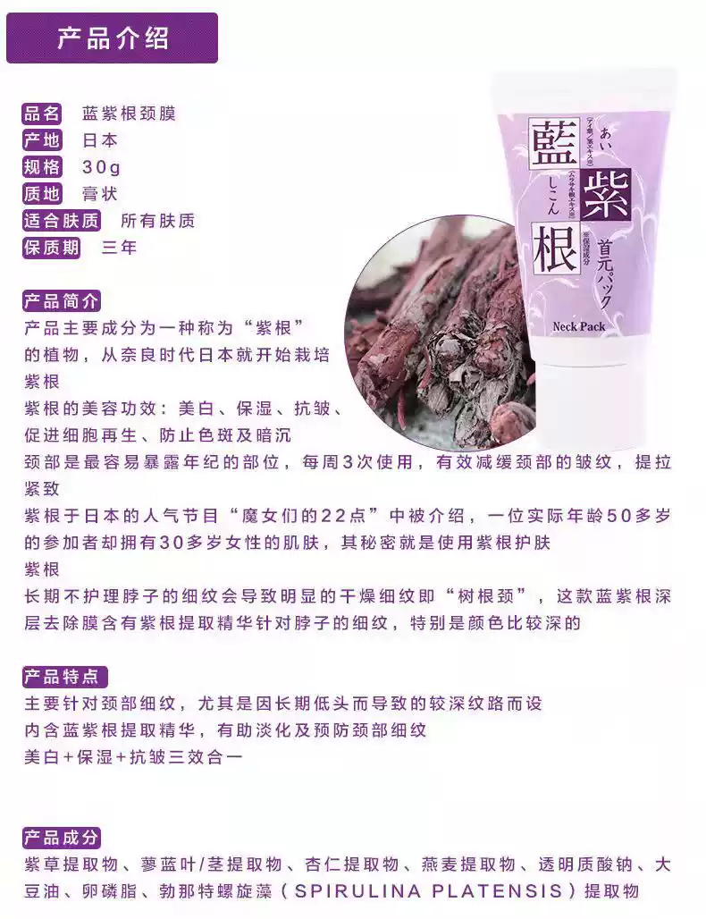 日本Chezmoi蓝紫根颈膜 去颈纹淡化细纹提拉紧致颈部 30g