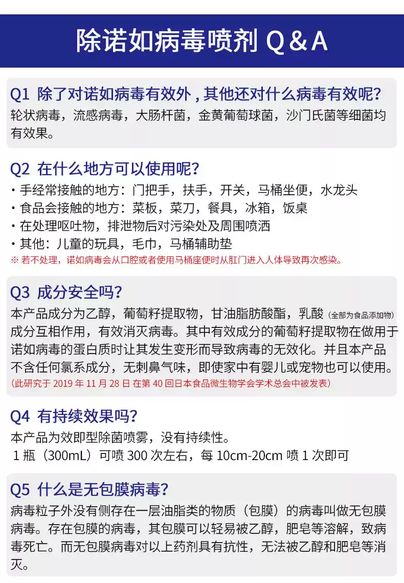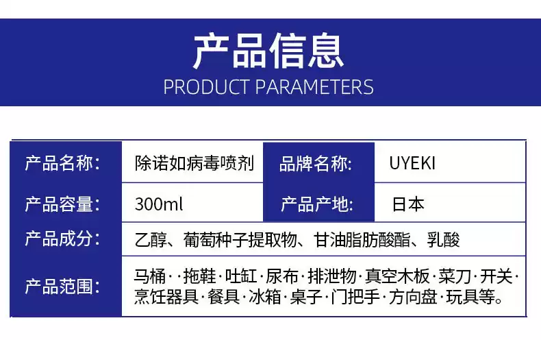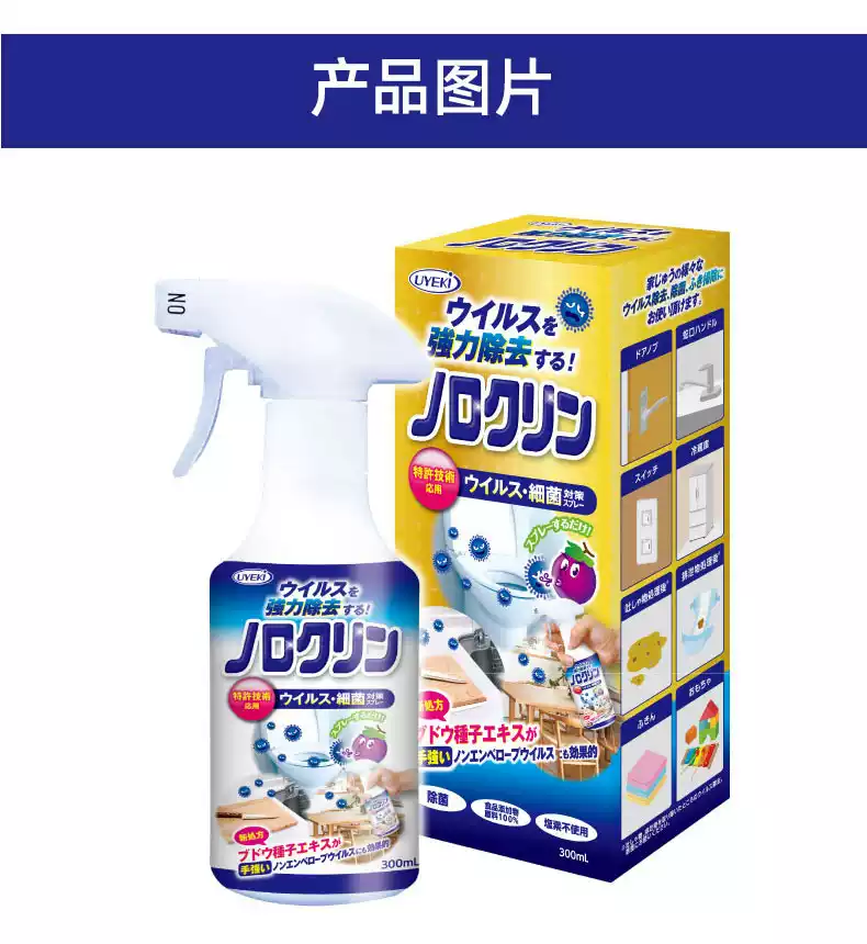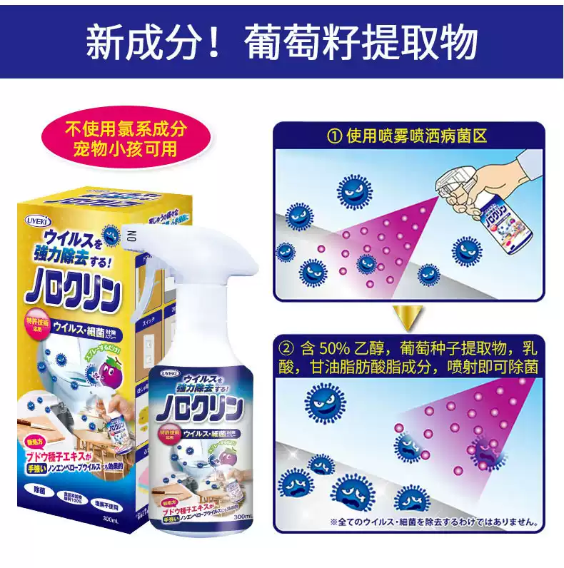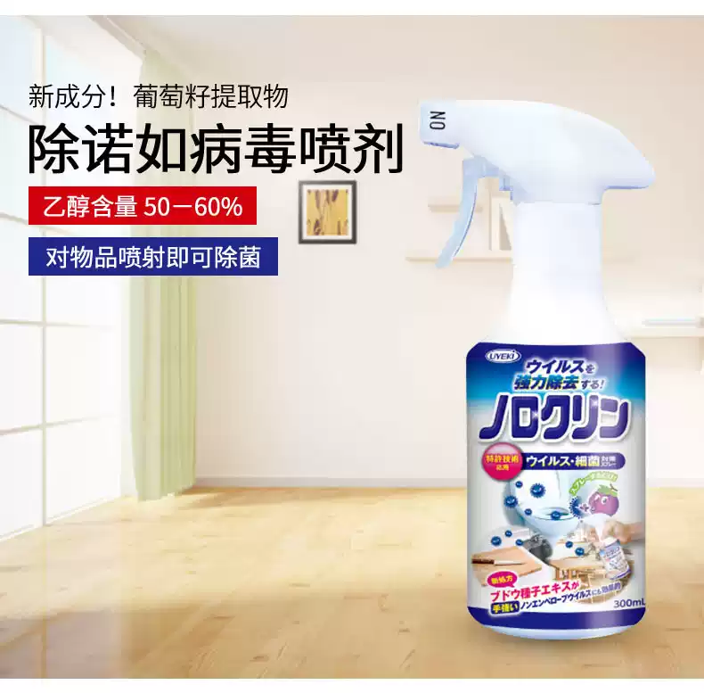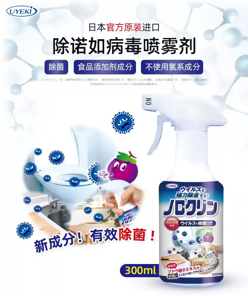 Uyeki日本除诺如病毒除菌喷雾剂厨房厕所室内玩具酒精消毒液杀菌 蓝色 300ml